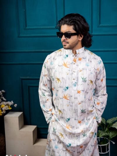 $1,350.00Original price was: $1,350.00.$1,000.00Current price is: $1,000.00.Urban Cotton: Arctic White printed Panjabi made from breathable cotton for comfort and refined everyday style.Stitch Gloss: Frosty White