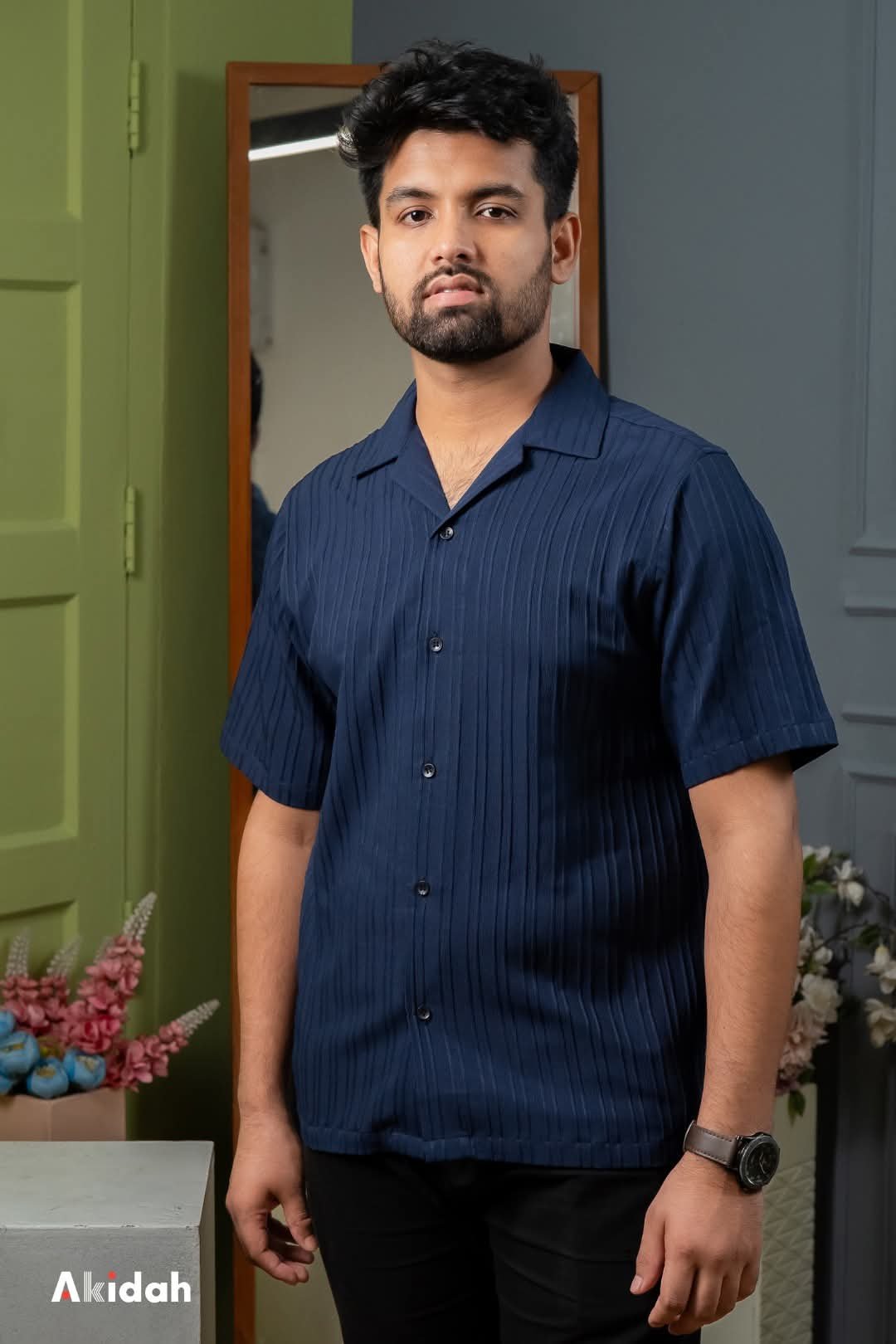 Urban Popcorn: Navy Blue Cuban Collar Half-Sleeve Shirt — textured, breathable, and effortlessly stylish.