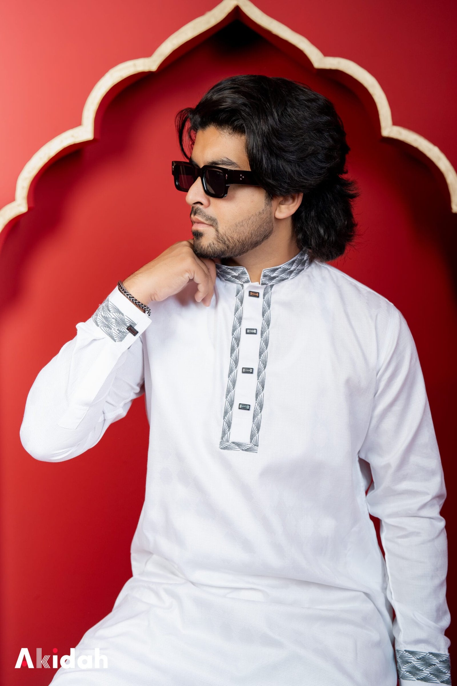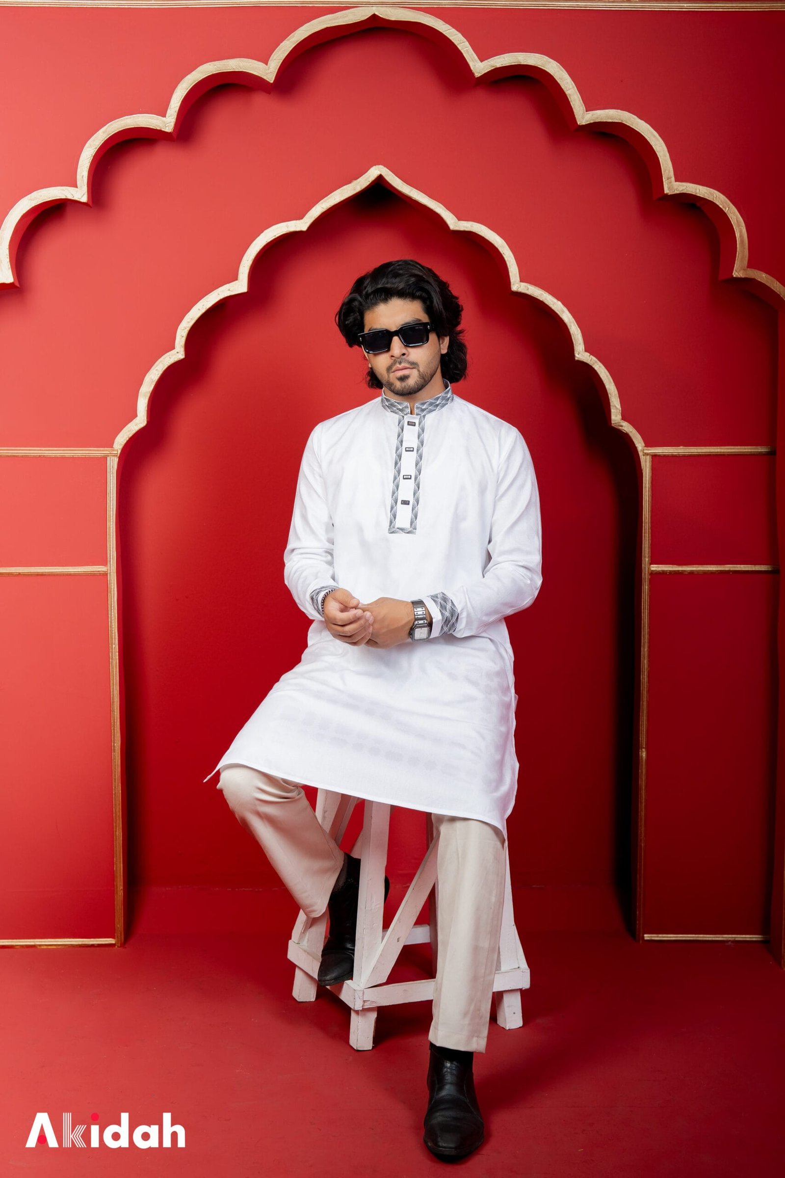 The Radiant Grid: Teal Azure Panjabi is crafted from a premium cotton and polyester blend, offering the perfect balance of comfort and durability. The elegant grid-inspired design adds subtle texture and depth, while the rich Teal Azure tone delivers a fresh yet sophisticated look. Designed for both special occasions and refined everyday wear, this piece blends modern style with timeless tradition.