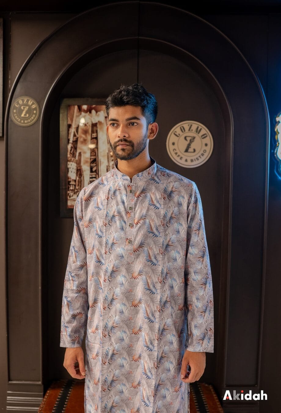 Silver Fern cotton-polyester blend Panjabi with digital print and Zari detailing — combining comfort, style, and refined traditional charm.