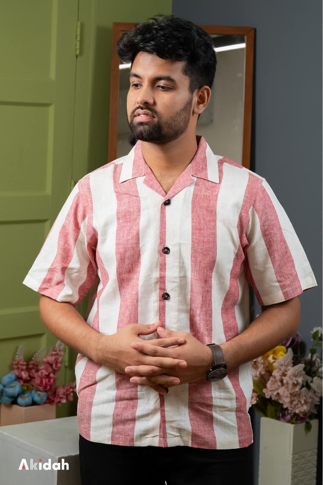 Vintage Rose Cuban Collar Half-Sleeve Shirt in 100% cotton with broad stripes — comfortable, breathable, and effortlessly stylish.